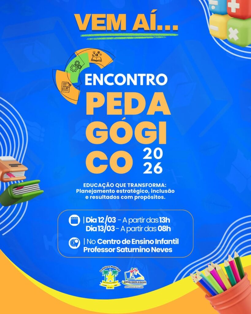 A Prefeitura Municipal de Santo Antônio dos Milagres, por meio da Secretaria Municipal de Educação (SEMEd), realizará nos dias 12 e 13 de março o Encontro Pedagógico 2026, um momento importante de planejamento, alinhamento e troca de experiências entre os profissionais da rede municipal de ensino.